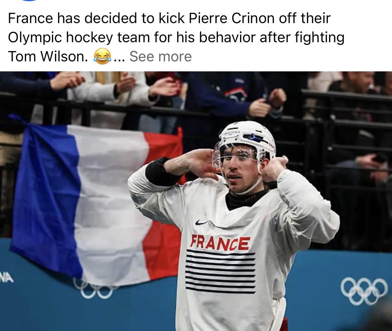 Wilson could throw a beer can at the president of the NHL, but I highly doubt Canada would kick him off their team πŸ˜† sucks for France