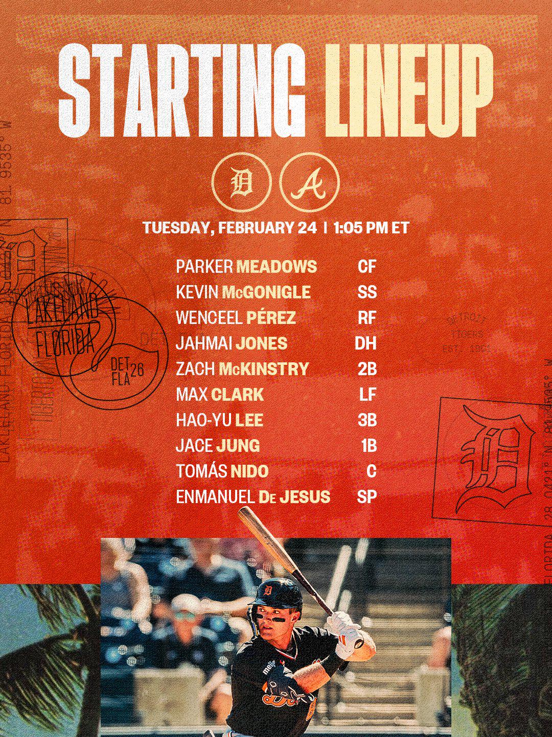 Kevin McGonigle and Max Clark in the lineup as the Tigers are on the road in North Port to play the Braves. 5 comments https://preview.redd.it/v5m43tedmglg1.png?width=278&format=png&auto=webp&s=0a3c21a1687f638103948cf1b385e9a2baf922ac I think the game is on MLB TV And also Jace Jung lol. Who is this pitcher? It sucks that PM wasn’t able to build off of his late season and playoff performance in 2024. This game is one of the 3 free games of the day on MLB thankfully! Leave a ReplyYou must be logged in to post a comment.