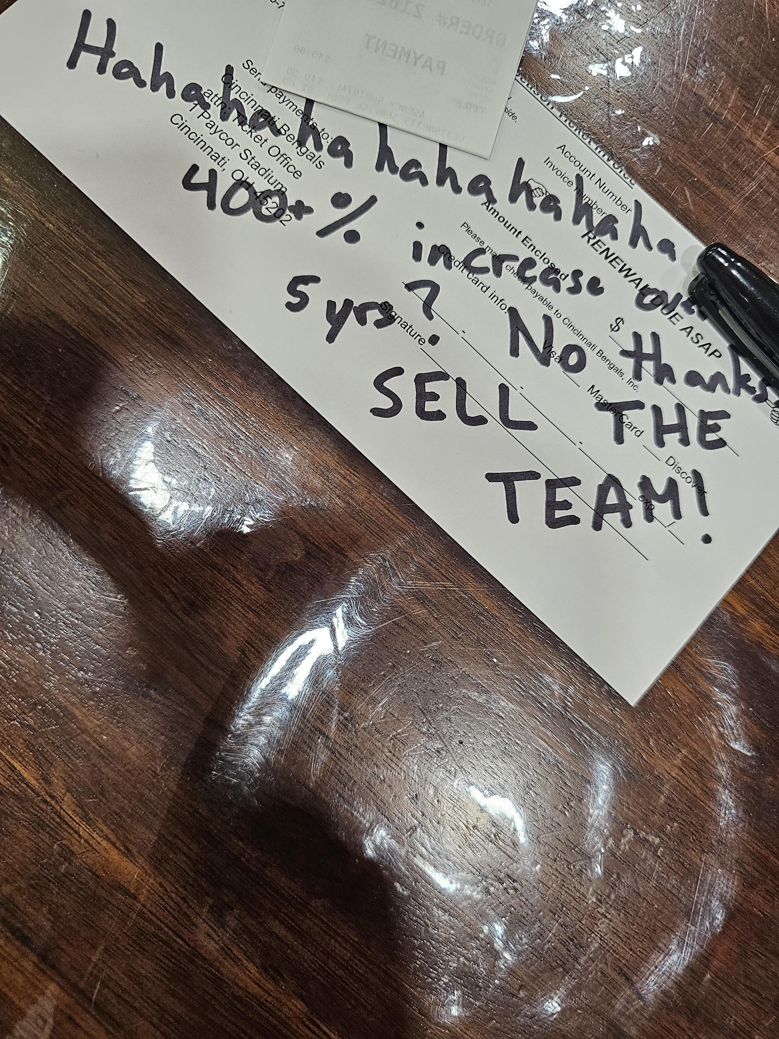 I feel like if the Browns ever sold the Bengals, the departure from Cincinnati would be imminent.