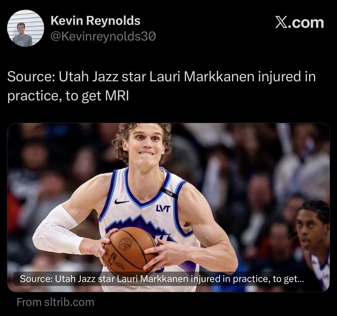 Let’s be clear: this is *not* a good thing for Lauri or the Jazz if this is a severe injury that cuts into next season.