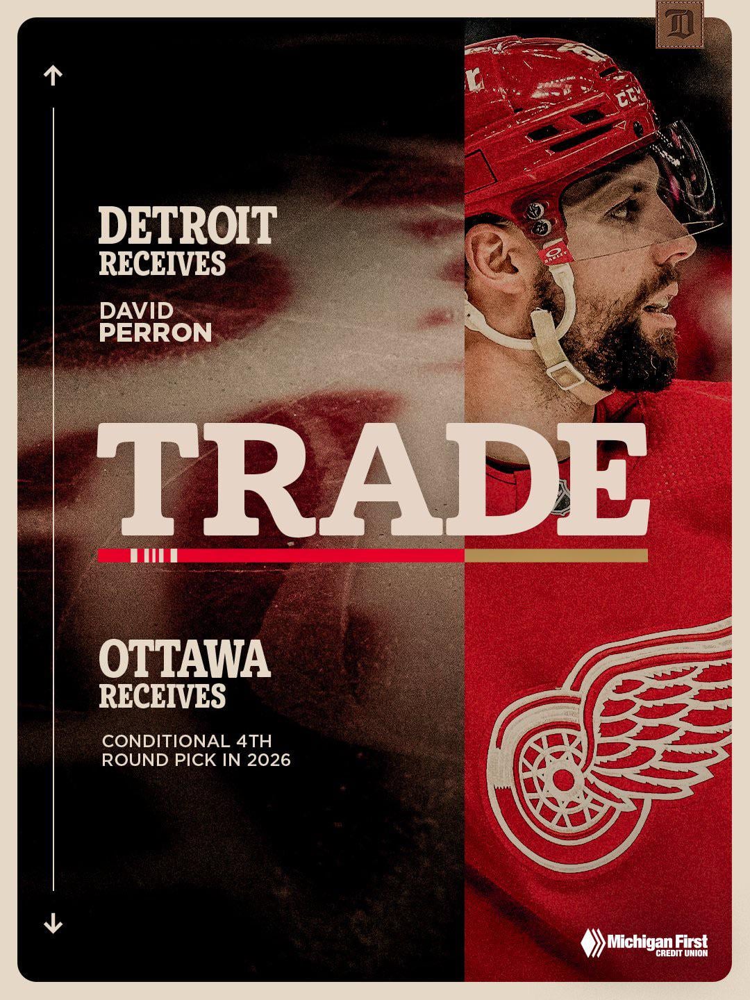 UPDATE: The #RedWings have acquired David Perron from the Ottawa Senators in exchange for a conditional fourth round pick in the 2026 NHL Draft.