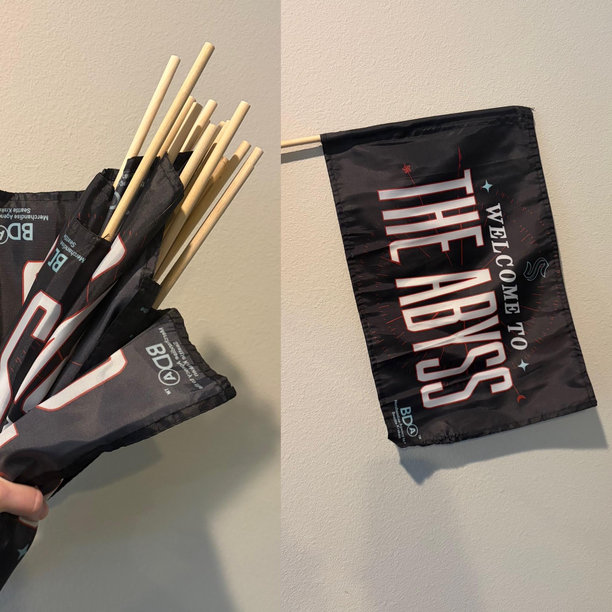 I’m back with more giveaway items that people didn’t take home! I snagged 14 extra hand flags yesterday. If more than 14 people are interested, I’ll randomly draw names. If you want one, just comment on this post with who your second favorite NHL mascot is after Buoy 🙂