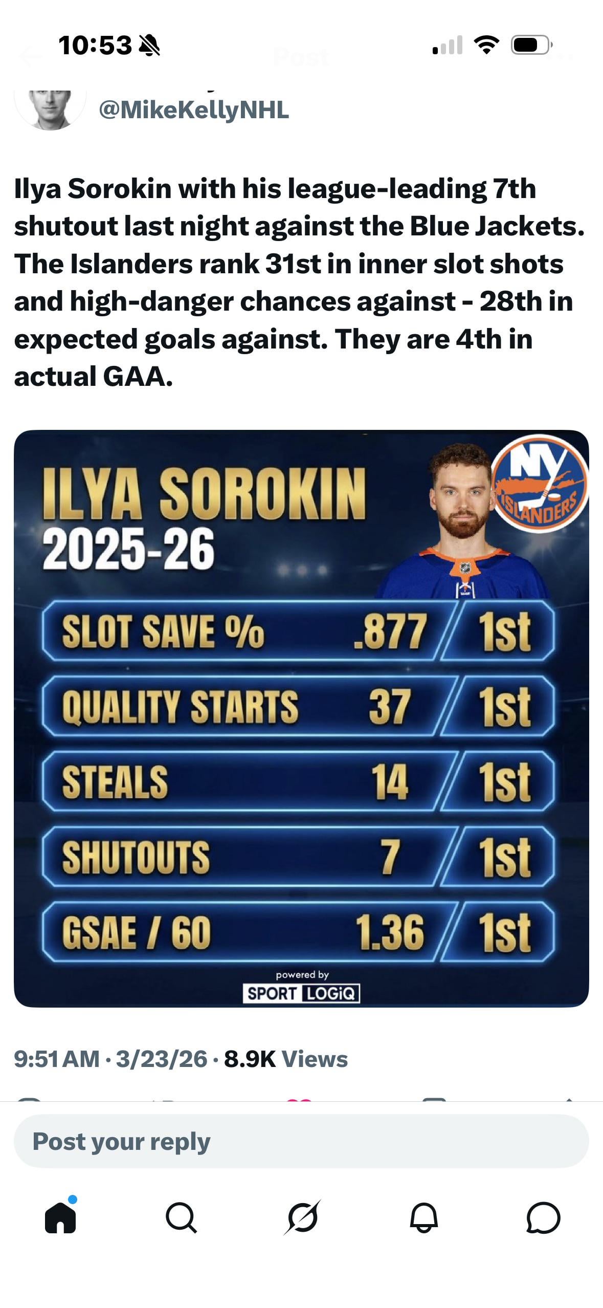 Take away Shaefer and Sorokin and we never even compete for a playoff spot this year. Take away peak years from a lot of our players (hopefully a trend) and we had a good shot at another lottery pick. But those two deserve the hardware headed their way for sure.