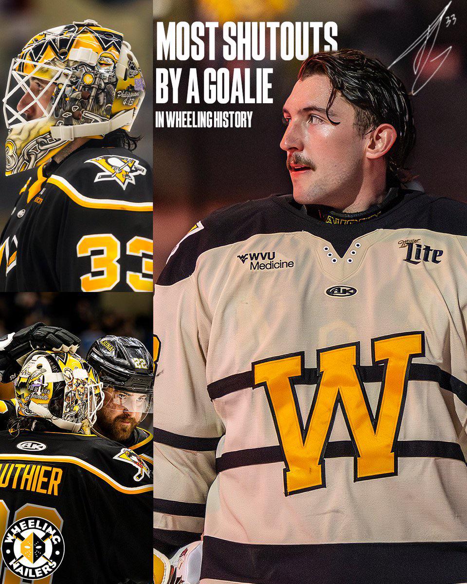 Taylor “GOAT” Gauthier sets Wheeling Nailers’ franchise record for career shutouts with 10 in team’s 34th year.