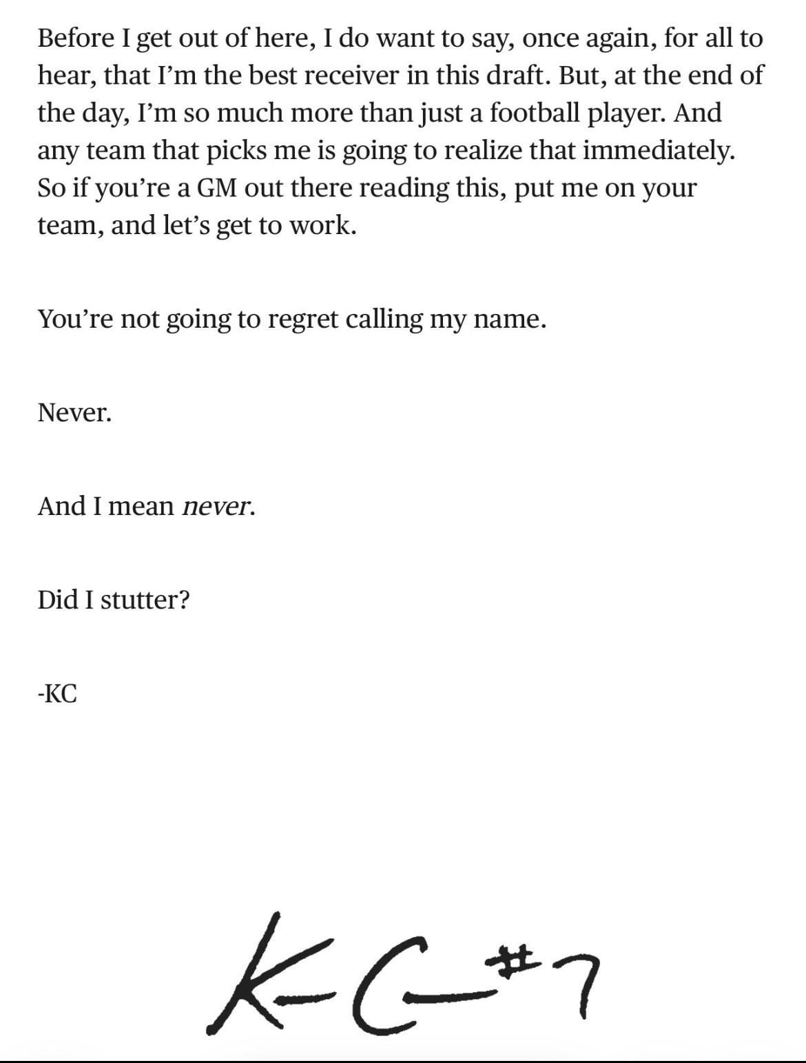 Texas A&M WR KC Concepcion with a message to NFL teams