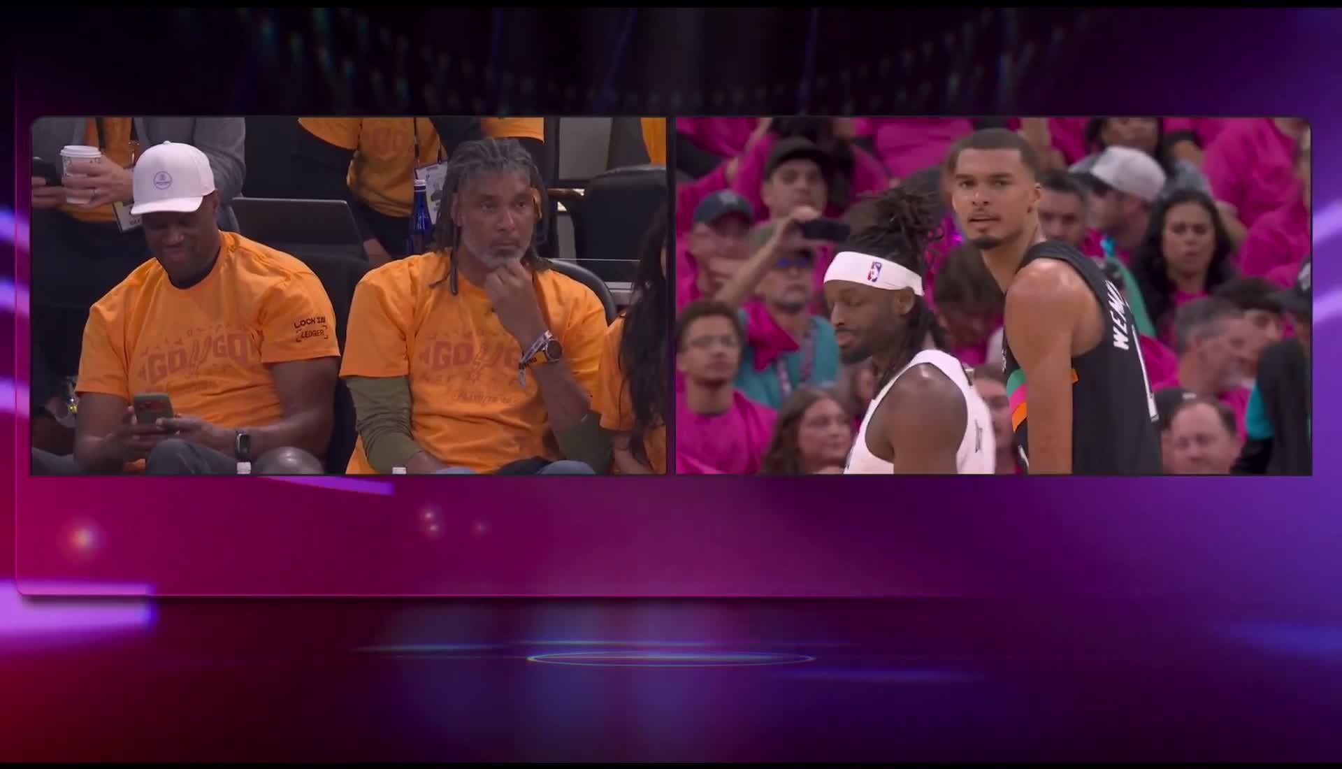 Spurs Twin Towers in attendance for Wemby’s playoff debut.