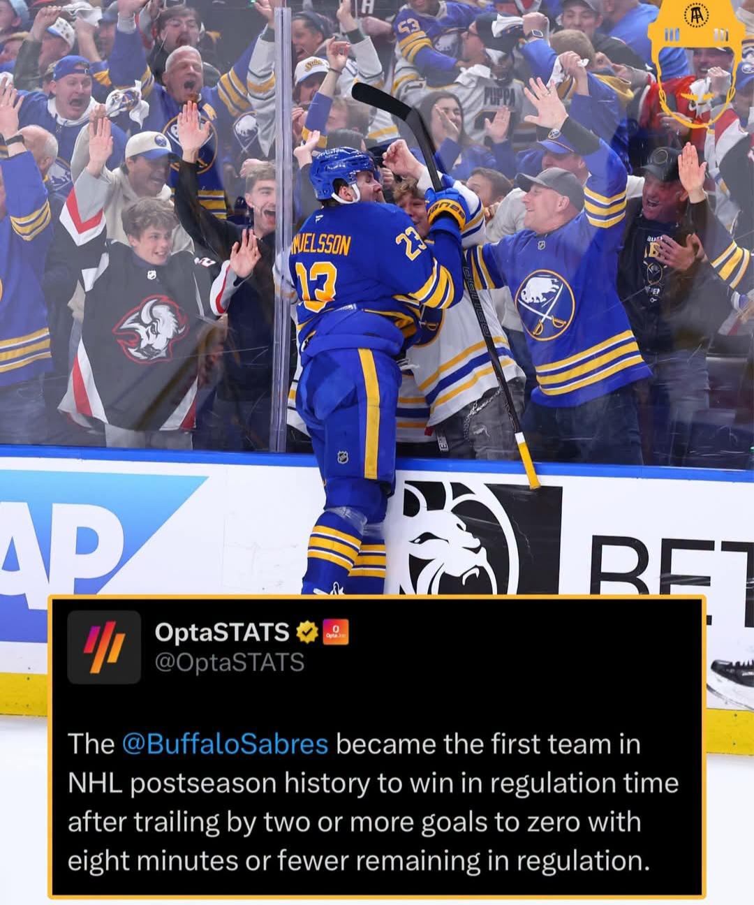 That 4 to 3 win was something else. The Sabres can score quickly and in bunches. It was a comeback game for the ages.