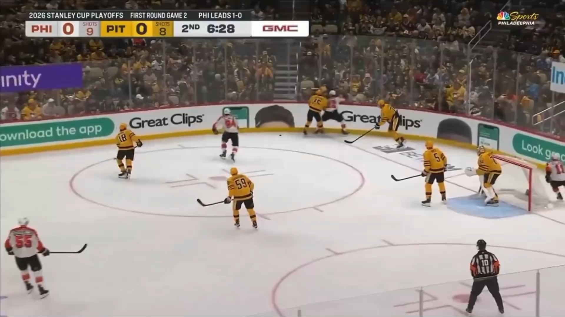 Total scumbag behavior from Pens. Helmet pulling last game and the goalie is trying to trip in this one.