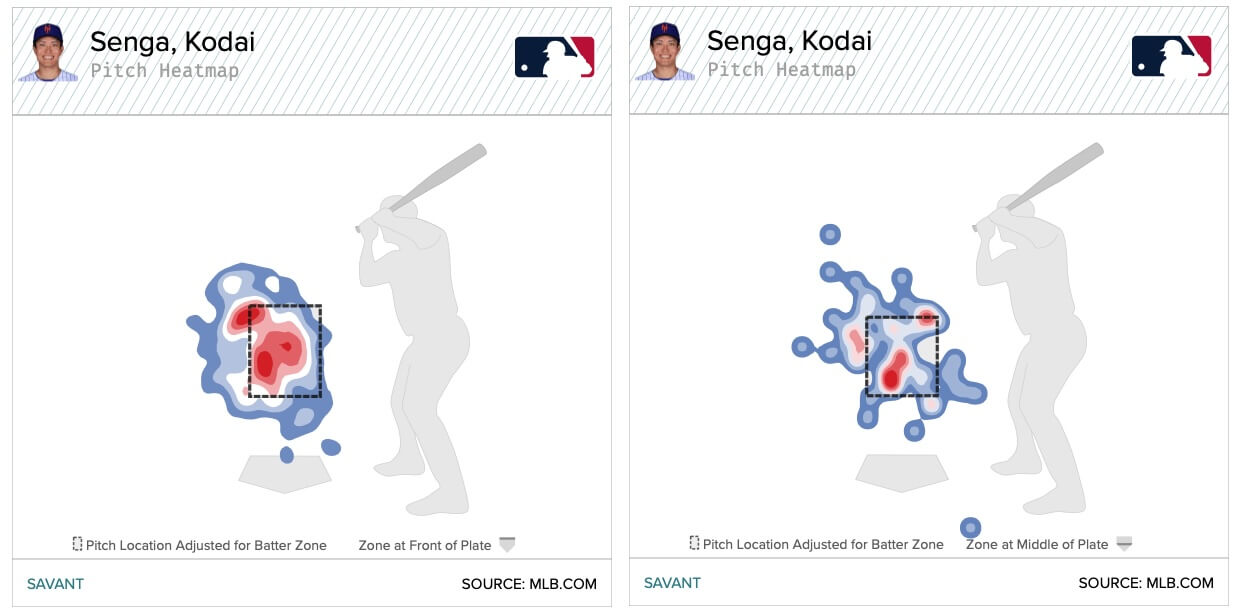 But Bichette’s issues do highlight a potential team-wide problem. No team lets the ball travel as deep into the strike zone as the Mets do. Bichette has had a lot of success doing this in the past, but he’s letting it travel even further this year, making contact 23.6 inches in front of his center of mass. The team as a whole makes contact at 28.4 inches.