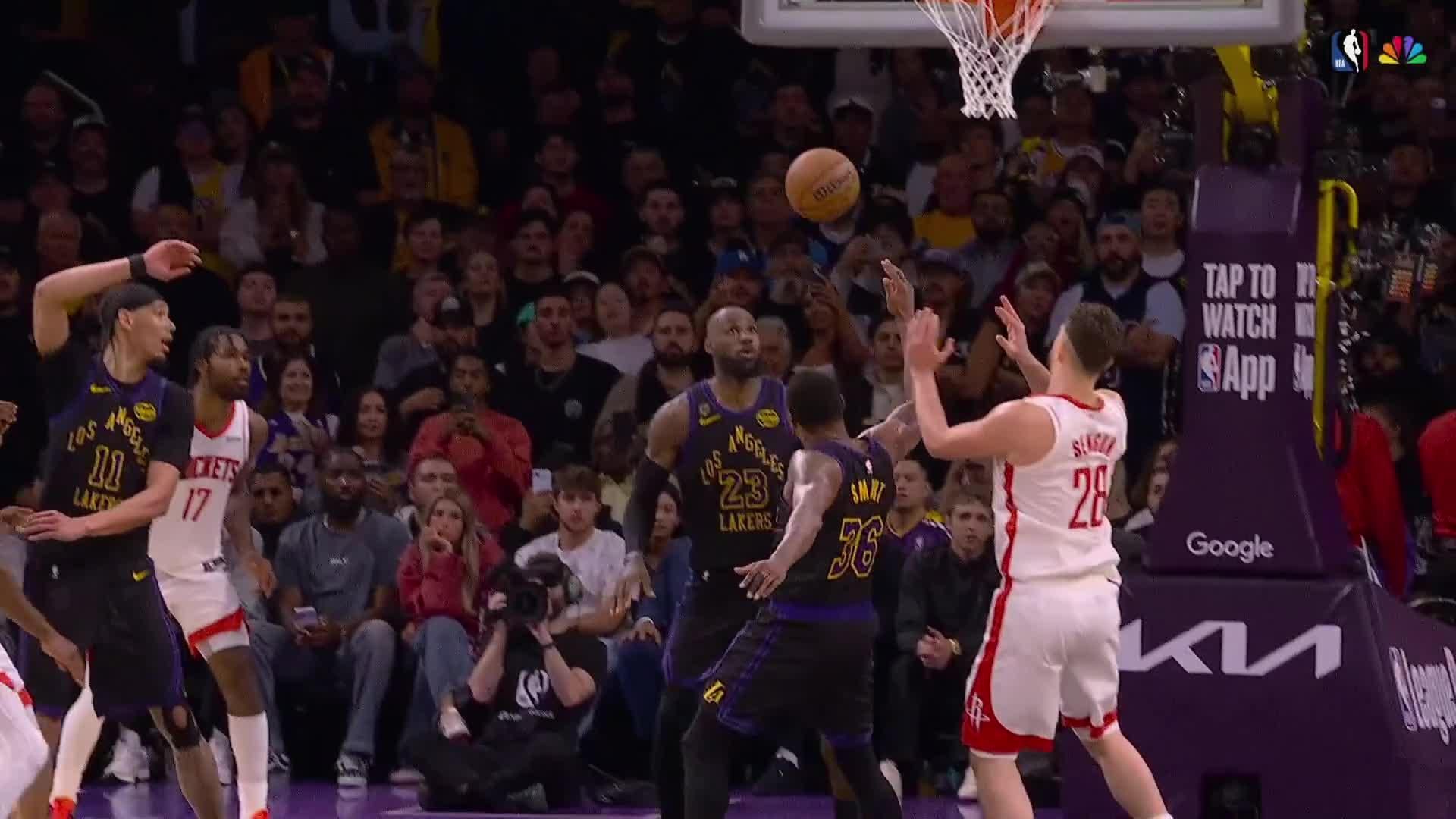 [Highlight] LeBron James and Marcus Smart pretend to slow down, trying to bite more time from the clock, and suddenly Smart finds LeBron for the cutting dunk (with replays).