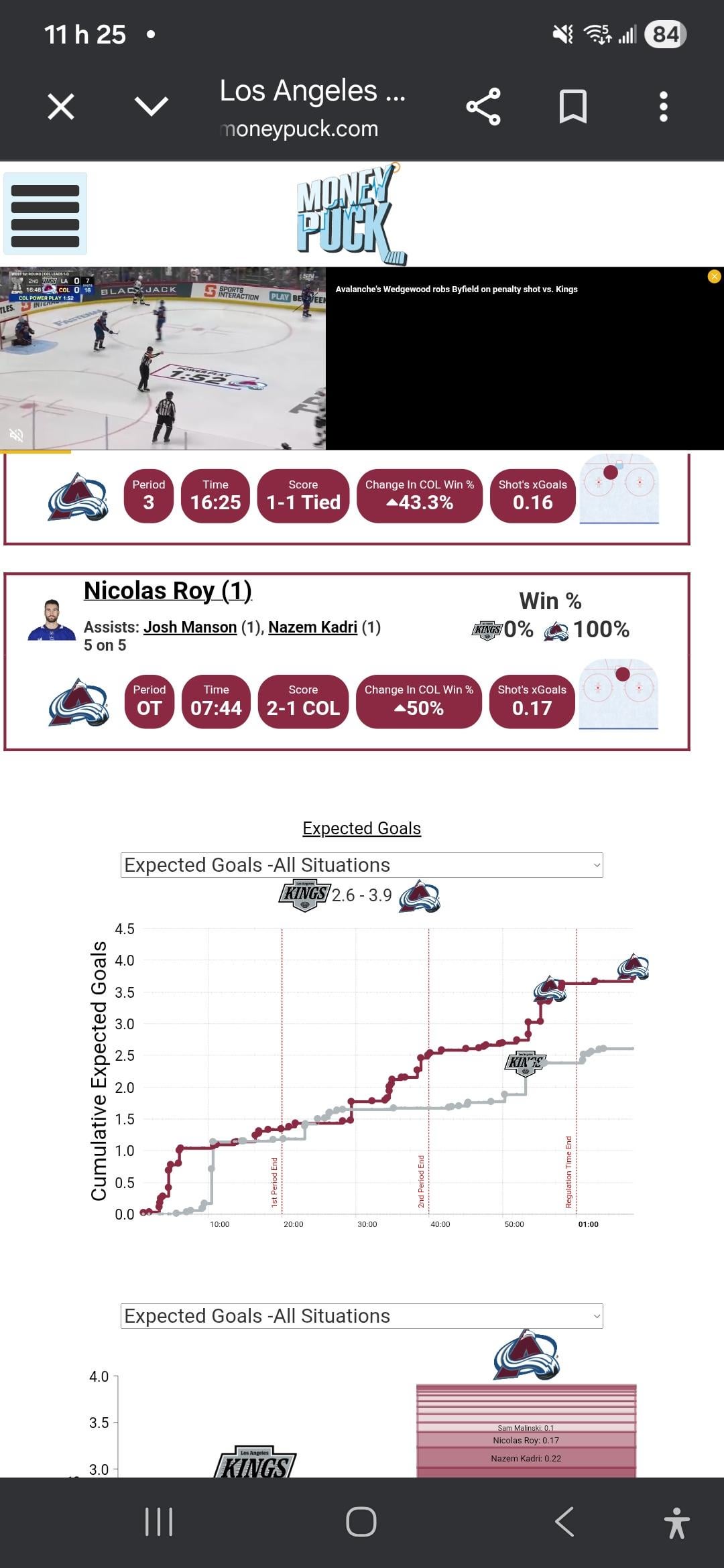 But also, my biggest surprise of the playoffs so far has been the Avs only scoring 3 regulation goals through 2 home games. They were scoring 3.8 GF/G at home this year.
