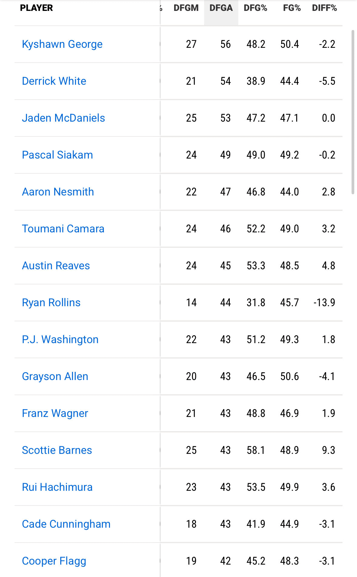 I mean literally no stat matters 3 games into the season. Someone could have 0% dfg and it wouldn’t rly matter.
