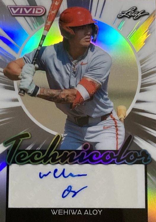 Pictured: 2024 Leaf Vivid #T-WA1 Wehiwa Aloy Arkansas Gray Prismatic Technicolor