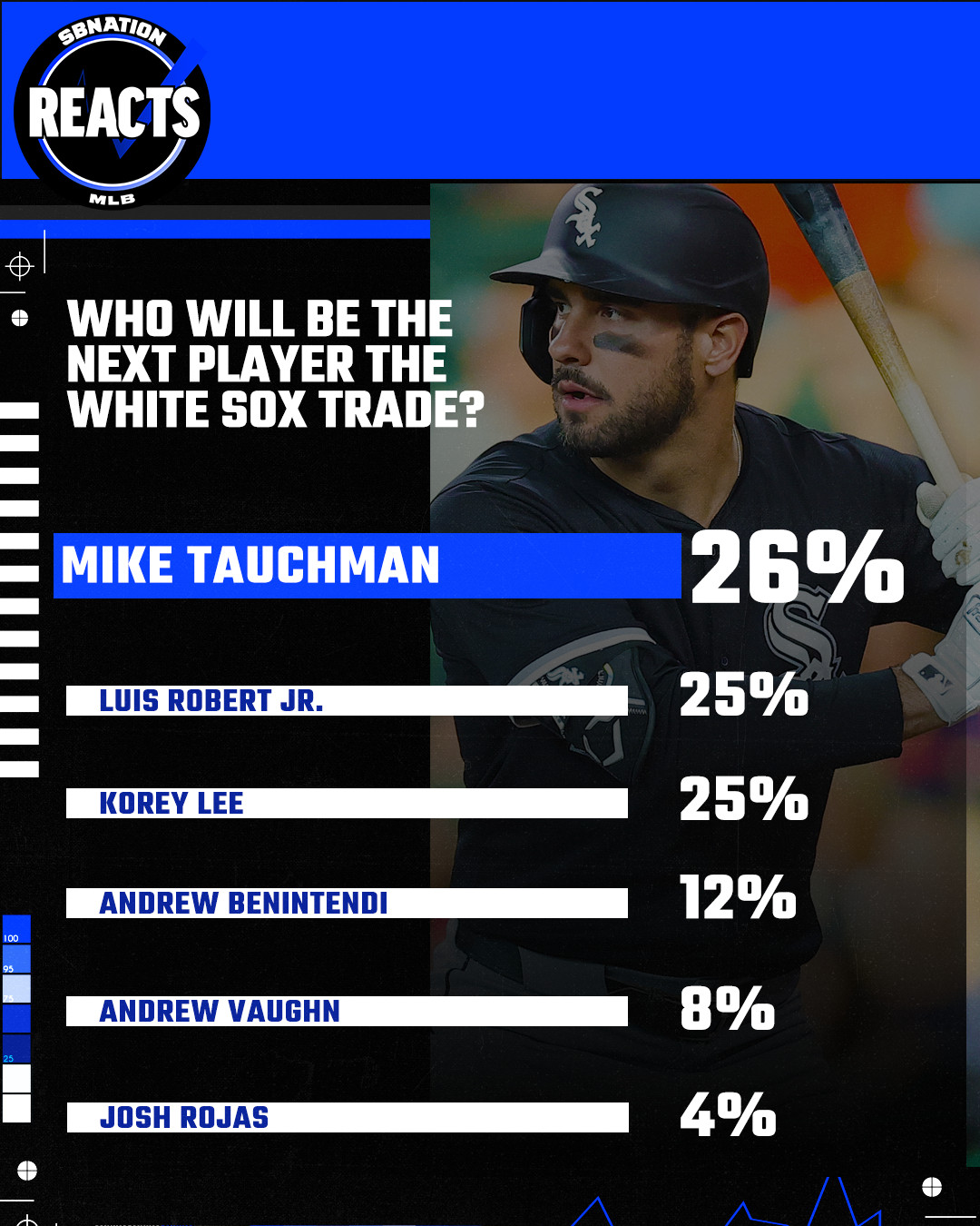 But, if the question is now who is the next next White Sox hitter traded, there’s still not much more clarity, as Mike Tauchman, Luis Robert Jr. and Korey Lee essentially split the vote.