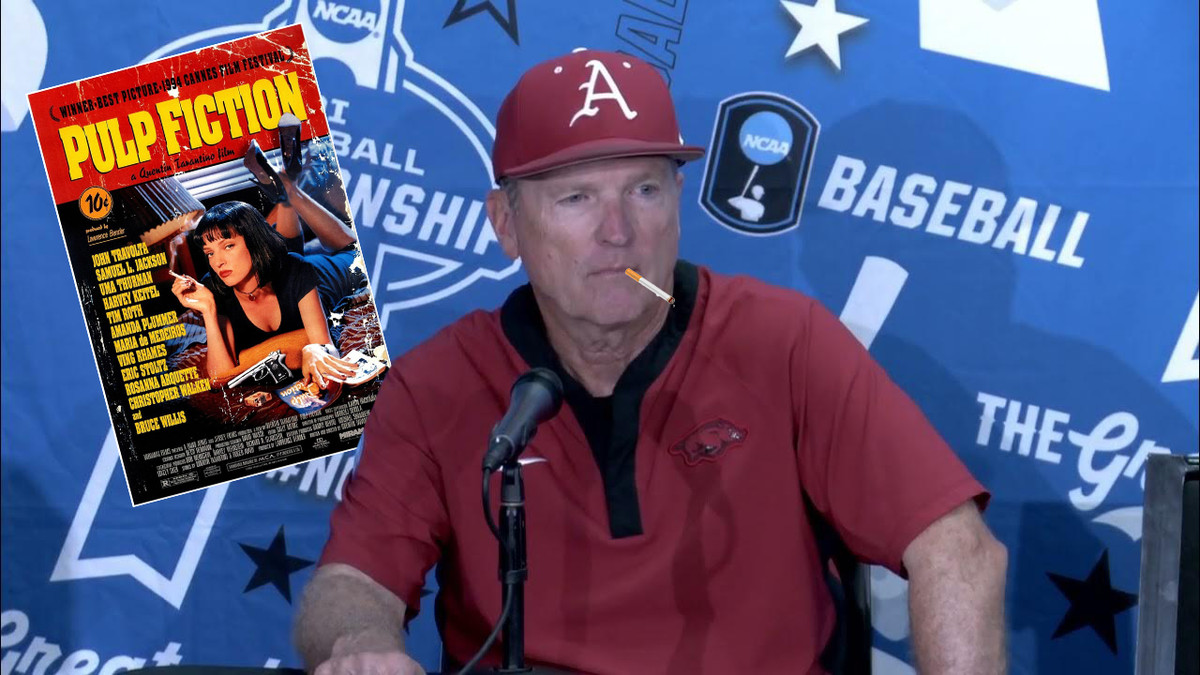 I think this rebrand is great for Arkansas. I think it sent a really strong message when Dave Van Horn showed up to his press conference this week with a lit cigarette and a Pulp Fiction poster to show we have a real bad boy energy: