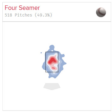 You can see from this heat map that Pallante center cuts his flat FB most of the time. When he gets it down, I suspect that turns into ground balls, but those middle-middle FB? Hmmm…Not so much. Remember, he throws this pitch 50% of the time.