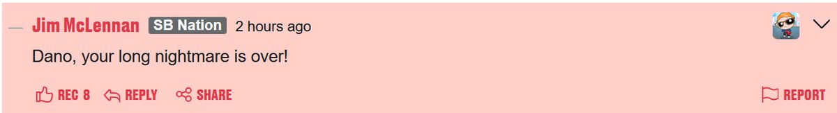 Like the WPA chart above, it was quite the roller coaster of emotions in the Gameday Thread today, with 283 comments at time of writing. A number went Sedona Red, ranging from the joyous to the despondent to the disbelievingly exuberant, and of course also several eminently valid complaints against the pretty crappy announcers on the Fox broadcast. By popular demand, and also because it captures the end result of the game as well as resonating with me personally, I give today’s Comment of the Game to our fearless leader: