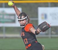 Verona senior Mallorie Kreuser fires a pitch against Middleton in a Big Eight Conference game on Tuesday, May 6, at Verona Area High School. Kreuser struck out six and gave up two earned runs in the Wildcats’ 9-1 loss.