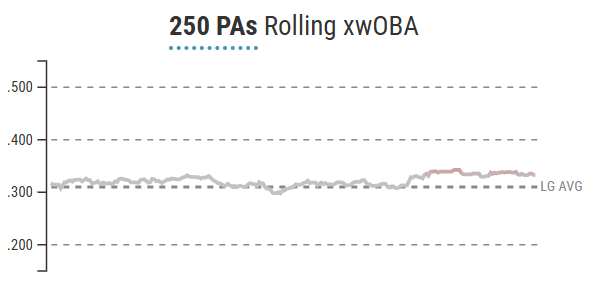 Something we can see easily is that Tovar’s expected numbers are better than his actual numbers. In what has become something of a theme this week, Tovar has a .303 xBA and .500 xSLG. He’s been better than his .258/.301/.406 slash line suggests.