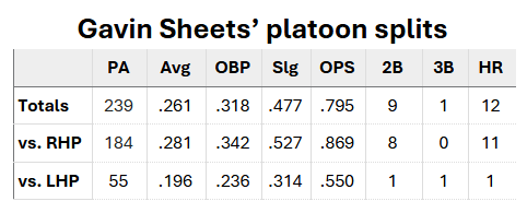 Sheets earned his way into being an everyday player with a torrid start to May, which included some big hits against lefties. But there is also not a right-handed option that the Padres have confidence in to platoon at DH or pinch-hit against lefties.