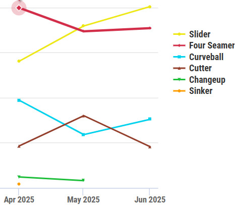 And that probably helps get more whiffs, but it also demonstrates a bit more belief in his breaking pitches. Color me intrigued.