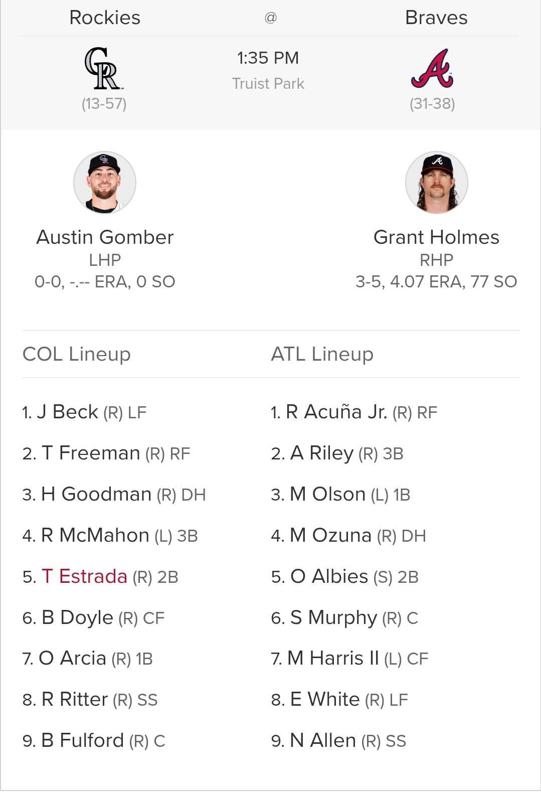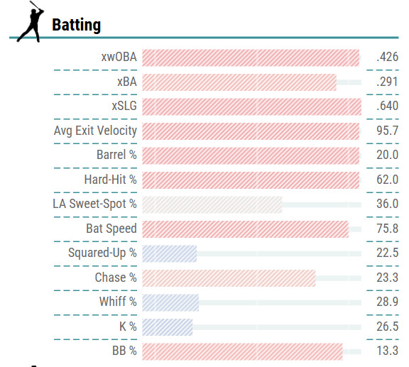 So Ronald Acuna is pretty good. Since coming from a second ACL injury and a year-long layoff, he is hitting .387/.471/.707, which is good enough for a 225 wRC+. The funny thing about this is that he’s still 30 points below where Aaron Judge is for the season, but I digress. In a 19-game stretch, Ronnie has accrued 1.4 fWAR, which puts him 5th on the team, and Matt Olson is really the only player (2.1 fWAR) that’s not within striking distance of being eclipsed by a leadoff home run in today’s game. We do have one stolen base during that time, so not surprisingly, the Atlanta Braves seem to be telling him not to test it too much in the early-going. But sheesh, what a comeback, and LOOK AT THAT STATCAST.