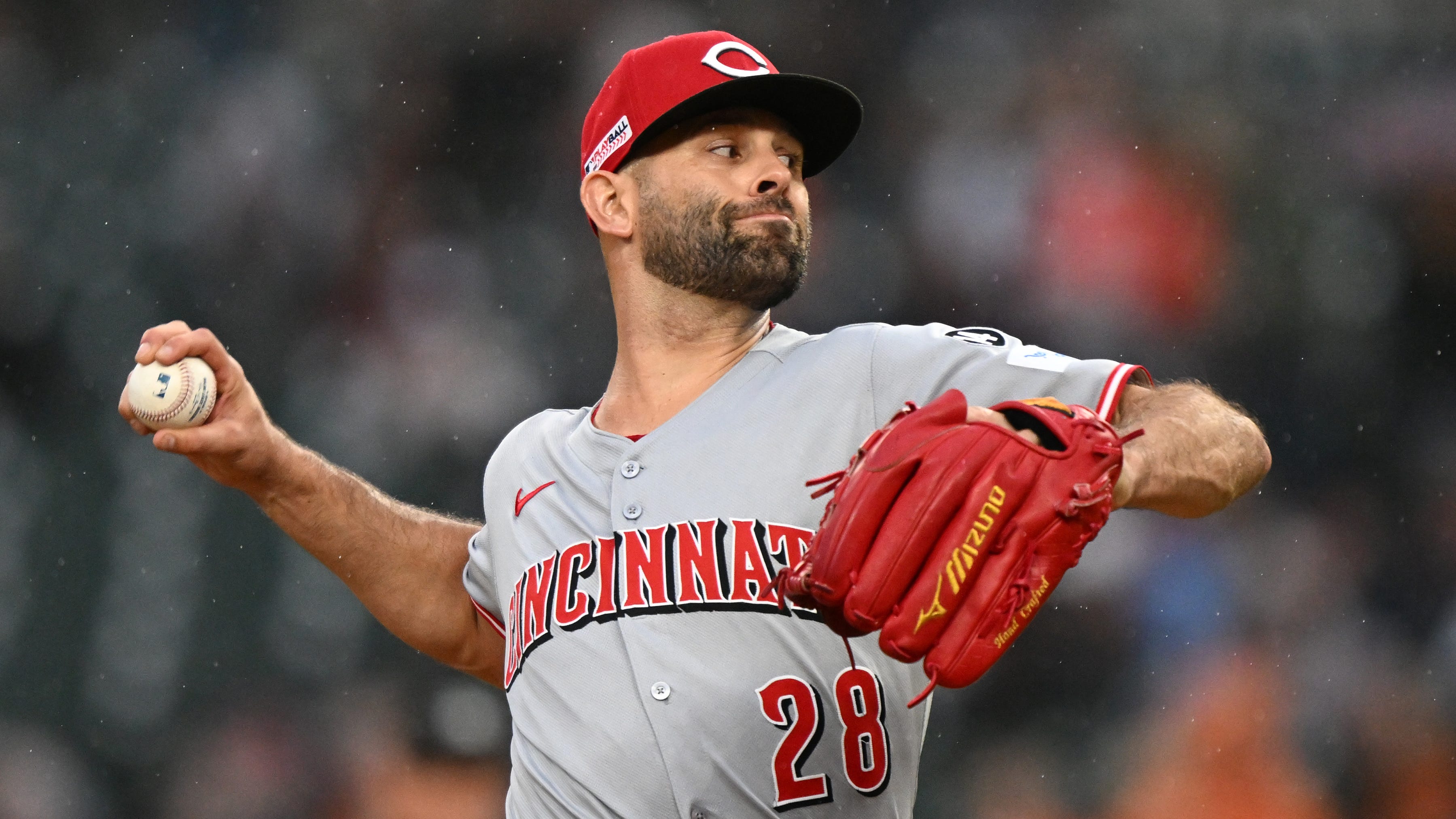 Cincinnati Reds pitcher Nick Martinez pitched in the rain for the third time in four starts. The MLB-best Tigers beat him this time.