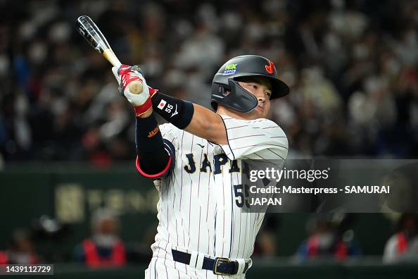 TOKYO, JAPAN – NOVEMBER 05: Designated hitter Munetaka Murakami #55 of Samurai Japan swings in the sixth inning during the game between Samurai Japan and Hokkaido Nippon-Ham Fighters at Tokyo Dome on November 5, 2022 in Tokyo, Japan. (Photo by Masterpress – Samurai Japan/SAMURAI JAPAN via Getty Images)