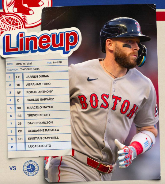 After some high-profile errors in the field, Kristian Campbell is serving as DH tonight and batting out of the nine-hole to take advantage of his speed.