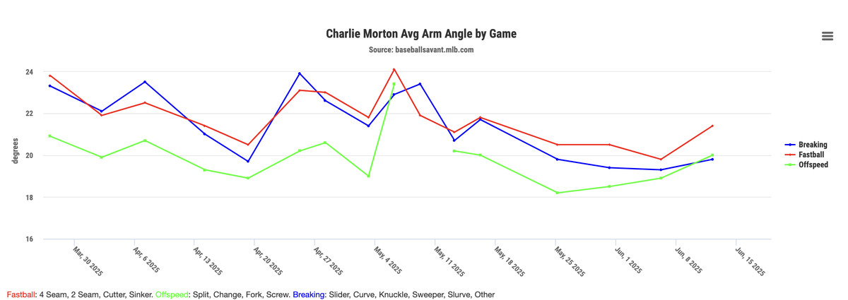 There are also changes to his offerings. For one thing, Morton’s curveball, his primary weapon over his career, is good again. Since April, hitters’ expected average on the pitch has dropped 100 points, down to .203. He’s living heavily on it now, 43% of his pitches, up ten percent from April. He’s also largely stopped throwing his cutter, against which hitters were averaging a garish .462 in the spring.