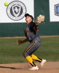 Cabrillo’s Kenslee Martin catches a St. Joseph pop fly.