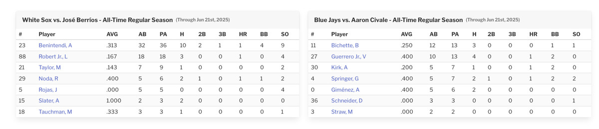 Flip side, Vlad Guerrero Jr. feasts pretty well off of Civale, and two other Blue Jays match Vladdy’s .400 career mark against the White Sox starter.