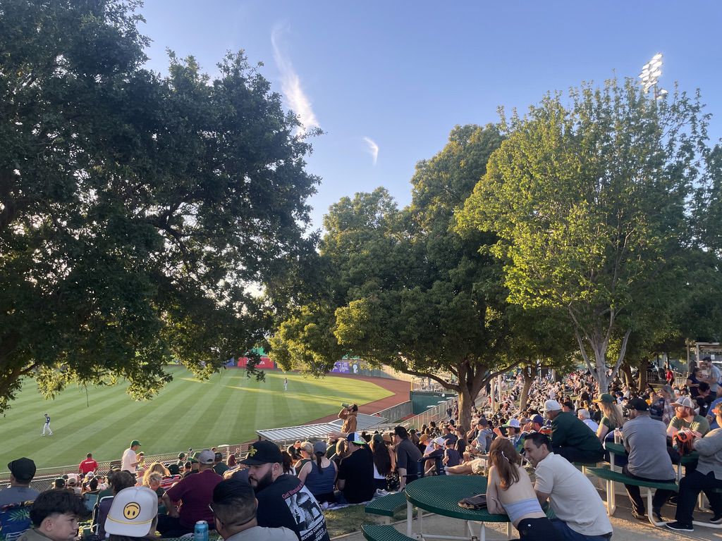 For the next few innings the thought that you were in a minor league stadium gives way to the familiar rhythm of the game. You find yourself watching Jacob Wilson and Tyler Soderstrom with new eyes—how easy they would be to root for, you think. Your wife beside you has adopted Soderstrom because his name resembles the most annoying appliance in your house. She cheers for his success and by the third inning you find his country-pop walk up song triggers in you an involuntary head bob. You worry that in the last at bat, you hoped he would get a hit so your wife would cheer.