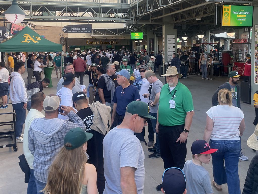 Someone to your right tries a chant: ”Let’s Go Oak-Land” clap, clap, clap-clap-clap.