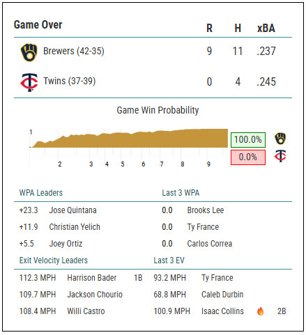 Simeon Woods Richardson gave up two in a sluggish first and two more in the second; throwing errors by Ryan Jeffers on attempted double steals, and two base hits from a red-hot Christian Yelich, contributed to a 4-0 Brewer lead before the Minnesota lineup really had an opportunity to settle in.