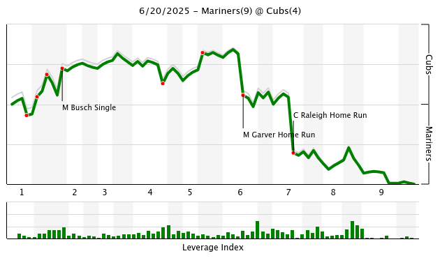 Game 75, June 20: Mariners 9, Cubs 4 (45-30)