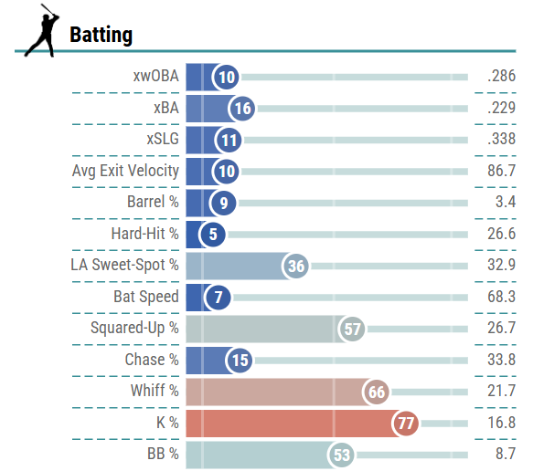 All six of his homers have come against RHP. And if we look at his Statcast Profile, there is little reason to be optimistic about Albies moving forward.