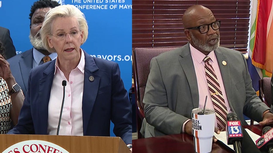 Pictured: Tampa Mayor Jane Castor and St. Pete Mayor Ken Welch.Â