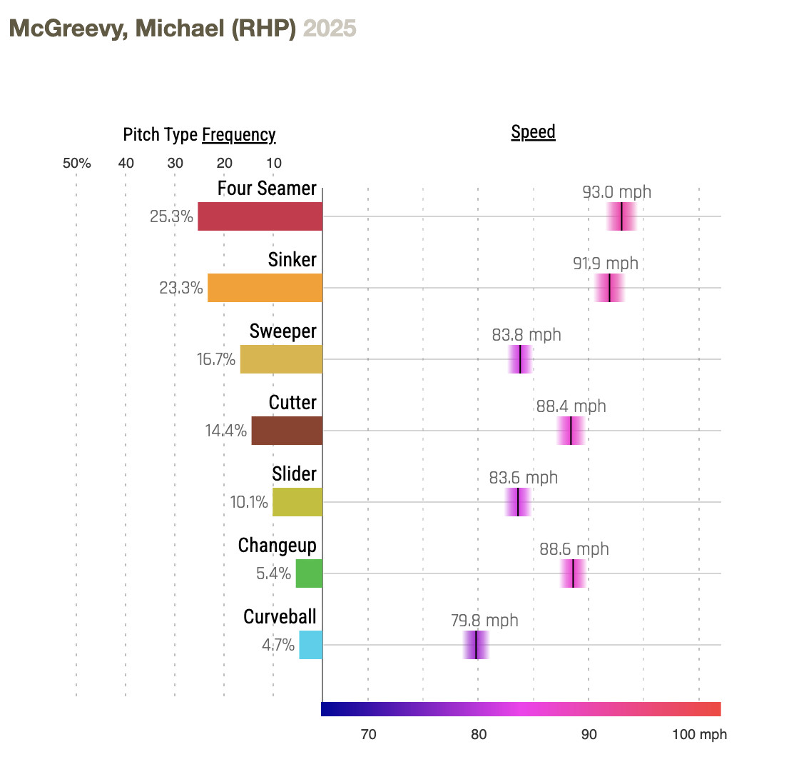 This will be his eighth MLB appearance (sixth start) and his third start this year. He had very good outings against the Mets and White Sox, not so much against the Dodgers. He has never faced the Cubs or anyone on their active roster.