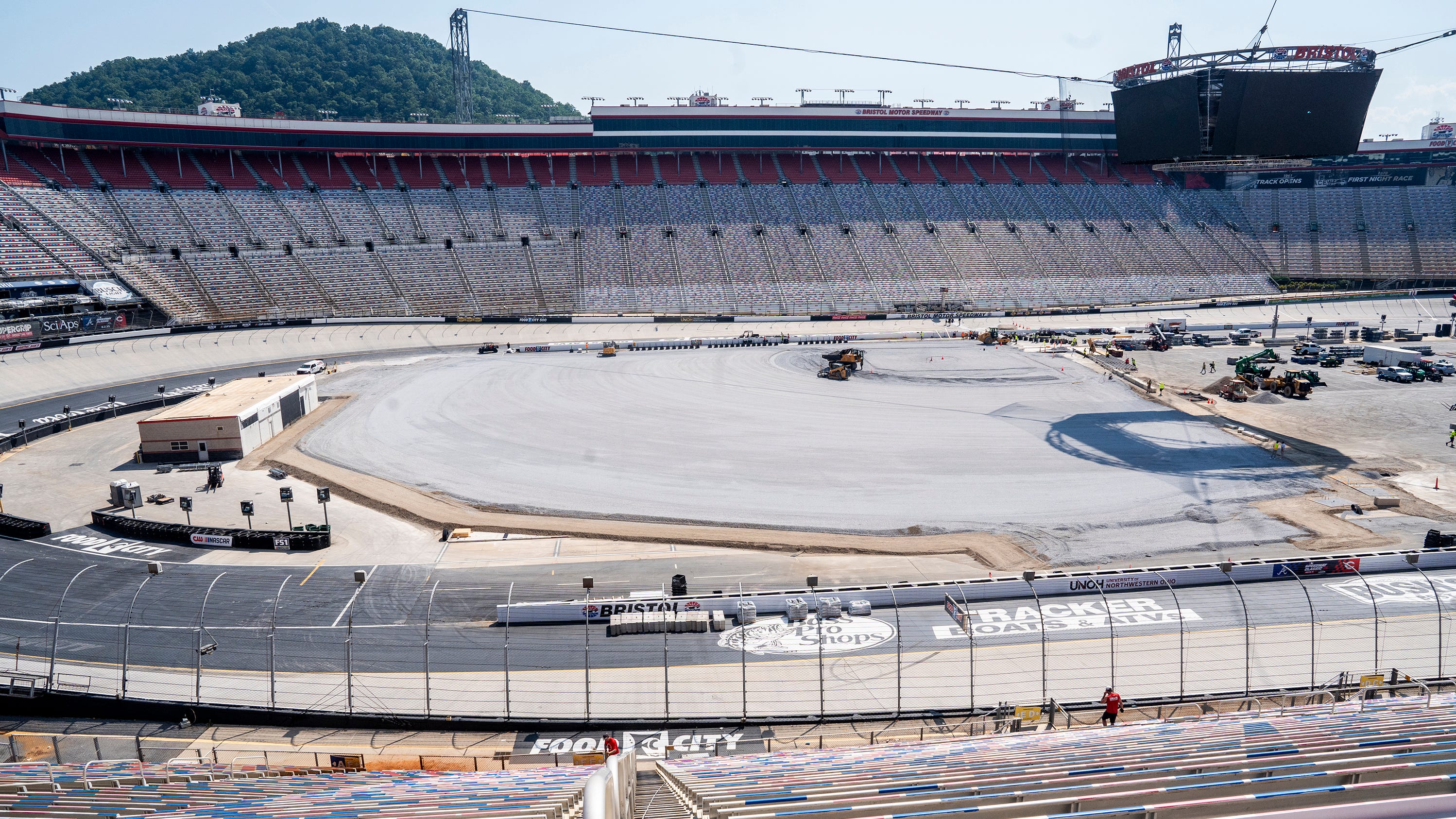 BRISTOL, Tenn. — Much of the familiar concrete infield at Bristol Motor Speedway is no longer visible.