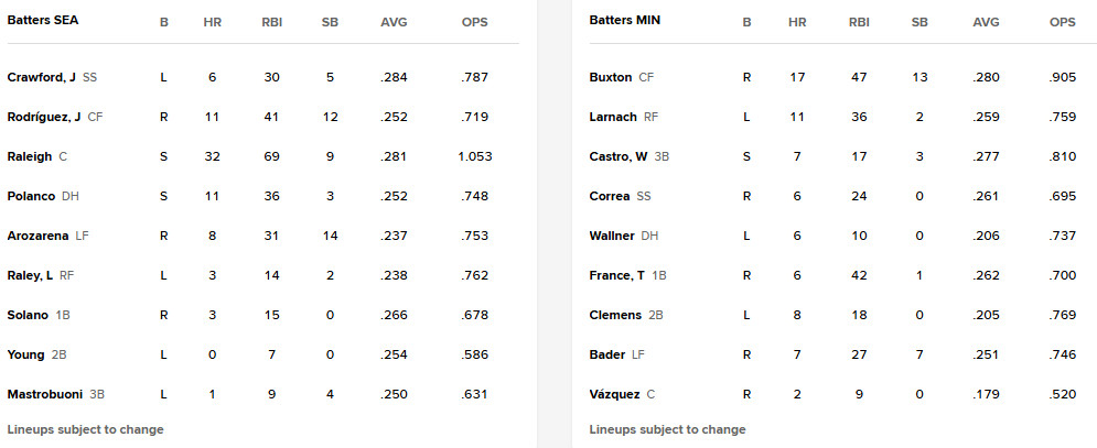 Jorge Polanco is back in the cleanup spot at DH after a mostly off day last night, and it’s Dominic Canzone and Ben Williamson’s turn to start the game on the bench, with Luke Raley in right and Miles Mastrobuoni at third base. George Kirby may have been knocked around in his last start at the always-chaotic Wrigley Field, but this matchup should be friendlier towards him, and fingers crossed we see an outing resembling his scintillating performance in Anaheim a couple weeks ago.