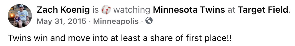 The Twins would throttle the A’s 11-0 that May 6, 2015 evening (6 scoreless innings from Kyle Gibson—somewhere TJ is smiling). By the time May closed, the Twins were a remarkable 20-7 within its boundaries—moving into 1st place in the AL Central!