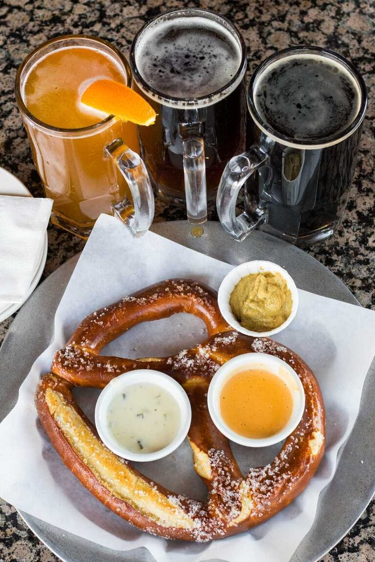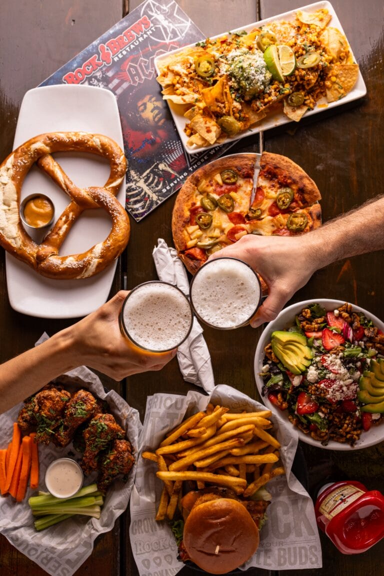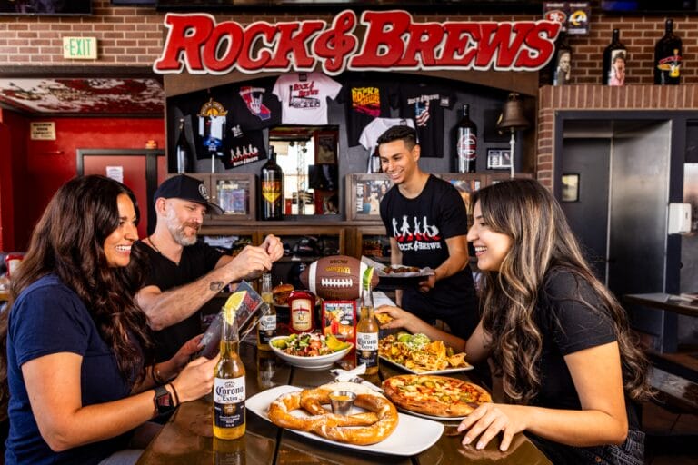 If you want rock and roll energy to match the excitement of a walk-off Angels home run, head to Rock & Brews. Co-founded by KISS legends Gene Simmons and Paul Stanley, this electric beer hall is built for hardcore sports fans and music lovers alike. With 50+ beers on tap, including Modelo and the Dodger Blonde, oversized pretzels and burgers named after rock icons, the menu is as bold as the atmosphere. Order Alice Cooper’s Poison Burger—a fiery mix of jalapeños and chipotle aioli—or split a Giant Bavarian Pretzel with friends while watching the Halos battle it out on the big screens. Loud, fun and always packed, this place feels like a stadium party every game day.