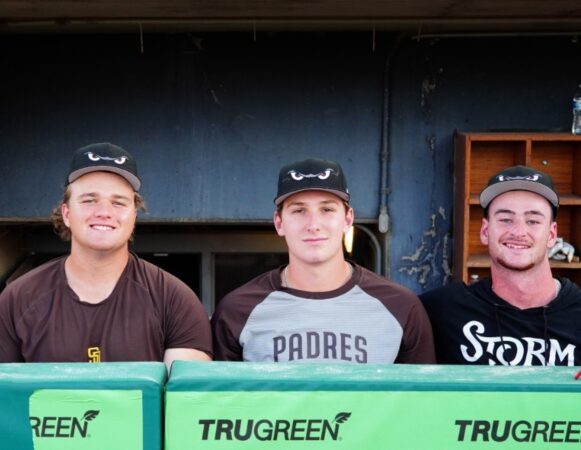 Kannon Kemp spends a lot of time with the pitchers. The right-handed pitcher was drafted in 2023 by the Padres, but missed last season after shoulder surgery. Just like Mayfield and Bateman, he is in his first year of full-season baseball with the Storm. He arguably has the best perspective on these young men. “They are both great guys and really good at what they do. It is fun to go out and watch them compete. I see them as brothers in the locker room. They will go at each other, but they also love each other just as much,” Kemp explains. Engaging in playful ribbing is the behavior I witnessed firsthand. They were on their best behavior during our interview, so you can imagine how they interact in the locker room. It would be fun to witness.