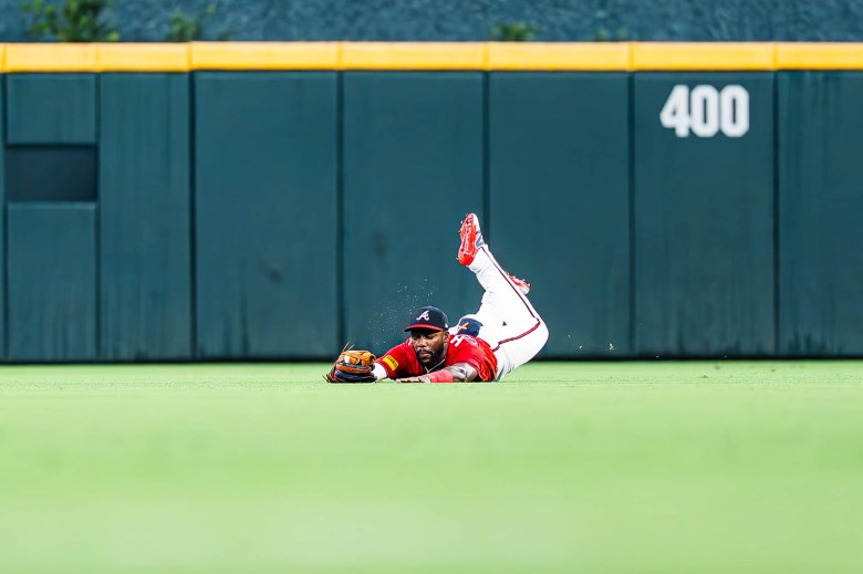 Michael Harris II (above) makes a sliding catch in the fourth inning during the game against the Philadelphia Phillies at Truist Park on Friday, June 27, 2025. Photo by Jack Casey/Atlanta Braves