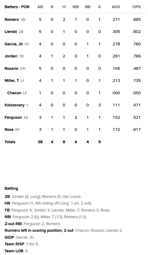 The Sea Dogs battled back in the ninth inning but fell short in extra innings in this back-and-forth affair in Portland on Thursday night. Blake Wehunt drew the start and was wild, walking five batters, but allowed just two runs in four innings. Trailing 2-1 in the fifth, Portland SS Max Ferguson swatted a two-run homer (1) to go ahead 3-2. After falling behind 4-3 in the ninth inning, third baseman Mikey Romero tied the game with an RBI double to send it to extras. Romero, as well as Blaze Jordan, each had two hits on the day.