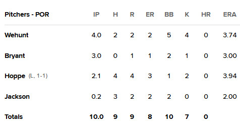 Relievers Alex Hoppe and Gabriel Jackson got hit around a bit in the extra frame, which gave Chesapeake (BAL) the 9-4 win.