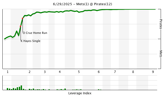 Dedniel Nuñez was next up for the Mets, an he served up an absolute meatball to Oneil Cruz which is likely landing somewhere near Market Square right now. It was now 10-1 Pittsburgh.