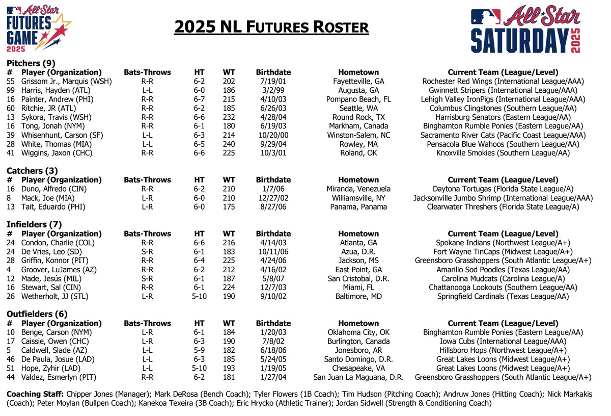 Here are the full rosters for this year’s Futures Game. Former Cubs Fred McGriff and Mark DeRosa are among the coaches.