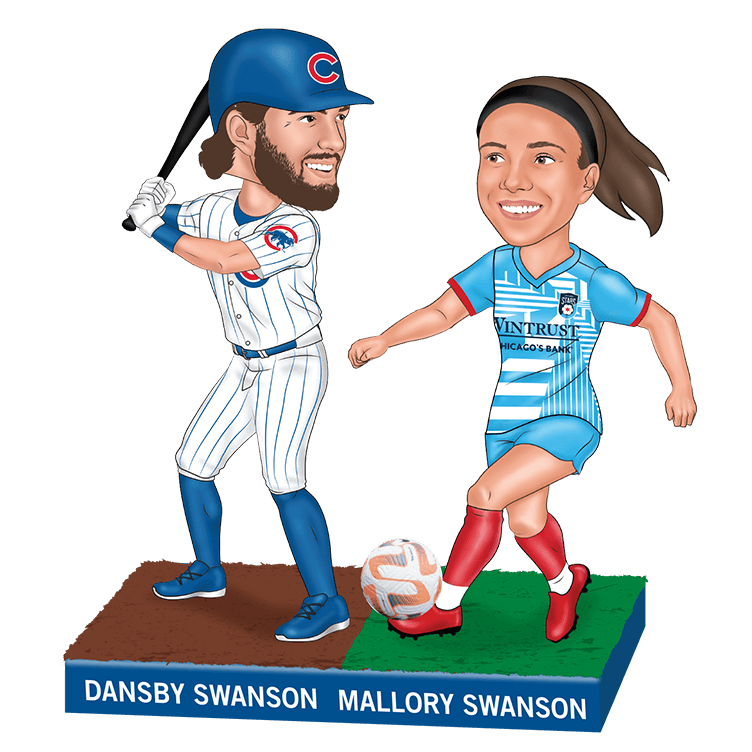 Cubs shortstop Dansby Swanson is married to Chicago Stars forward Mal Swanson (who threw a first pitch to her husband at a Cubs game a couple years ago), so it’s about time Chicago’s top athlete power couple was immortalized with a tandem bobblehead. This one will be available on Aug. 17.